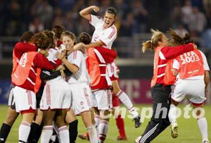 美國(guó)當(dāng)?shù)貢r(shí)間10月2日晚,在2003女足世界杯中國(guó)隊(duì)與加拿大隊(duì)爭(zhēng)奪四強(qiáng)席位的比賽中,開(kāi)場(chǎng)不久,由于中國(guó)隊(duì)后衛(wèi)的失誤,被加拿大隊(duì)攻入一球,在隨后的比賽中雖中國(guó)隊(duì)破門無(wú)術(shù),只能告別世界杯。作者:劉占坤