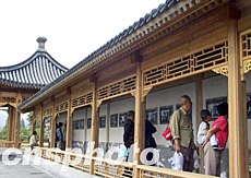 曾經毀于八國聯(lián)軍的頤和園耕織圖景區(qū),經過修繕現(xiàn)已部分向游人開放!笆弧遍L假期間在臨水的廊廡中陳列著的數(shù)十塊耕織圖復制品引人注目。中新社記者:張勤
