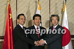 溫家寶表示,中日韓三國合作基礎良好,發展潛力巨大。去年三國經貿合作保持強勁勢頭,信息產業、環保、人力資源和文化等領域的合作發展很快。三方還就防治非典開展了良好的合作,開辟了公共衛生合作新領域。