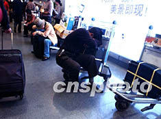 北京首都國際機場連日涌現十月黃金假期千千萬萬返回的乘客,不少人疲憊不堪,準備轉乘飛機回家。