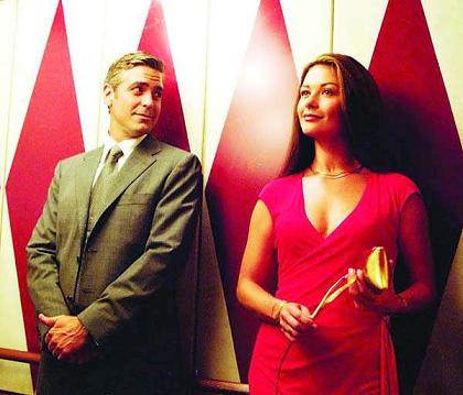 克魯尼:小本(本·艾弗萊克)和小珍(珍妮弗·洛佩茲)。(忍不住大笑)澤塔·瓊斯:(看著克魯尼)你在瞎說什么啊?(也忍不住大笑)可憐的好萊塢!電影中的故事在世界任何地方都有可能發(fā)生,但好萊塢卻是這種事情發(fā)生得最多的地方。我知道很多人為了金錢而一次次地結(jié)婚離婚,但我不會(huì)說出他們的名字。