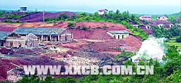 昨日上午記者趕到新溪村時,通往湘東花炮廠的道路被當(dāng)?shù)劓?zhèn)干部和警察封鎖。在當(dāng)?shù)卮迕竦膸ьI(lǐng)下,記者走山路輾轉(zhuǎn)來到了湘東花炮廠旁邊的一座小山上。爆炸地點位于一個山坡下,白煙仍在現(xiàn)場緩緩向天空升起。與爆炸地點相隔不遠(yuǎn)的幾座廠房均發(fā)生不同程度的坍塌,木條凌亂地散著。