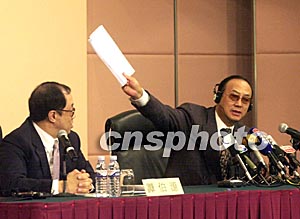 “內地與澳門關于建立更緊密經貿關系的安排”十七日下午在澳門特區政府總部舉行簽署儀式,國家商務部副部長安民和澳門經濟財政司司長譚伯源,分別代表中央政府和澳門特區政府在協議上簽字,國家副主席曾慶紅專程來澳出席了簽署儀式。