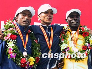 肯尼亞選手約翰遜·切洛諾和埃塞俄比亞選手阿謝拜爾·迪邁斯分別以二小時(shí)十四分及二小時(shí)十四分零三秒的成績(jī)獲得男子組比賽的第二名和第三名。