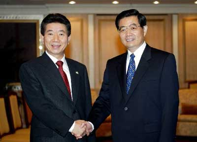 胡錦濤對盧武鉉說:今年7月你訪問中國時,我們雙方決定建立中韓全面合作伙伴關系,并確定了雙邊合作的重點領域。在這一精神的推動下,兩國在各方面的合作都取得了新的進展。兩國領導人經常見面體現了我們之間的良好關系。目前,兩國經貿合作發展迅速,今年1月至9月,雙邊貿易額已達440億美元。我們認為,中韓關系的順利發展,友好合作的不斷擴大,為中韓兩國人民帶來了實實在在的利益。希望雙方進一步共同努力,積極開拓,將中韓全面合作伙伴關系落到實處。