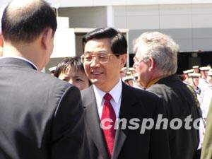 到機場歡迎胡錦濤主席的還有聯邦和新州官員、華人華僑、中資機構負責人、中國留學生代表和中國使領館工作人員。