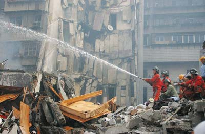 昨天凌晨4點(diǎn)多,湖南衡陽市珠暉區(qū)宣亭村一棟八層四合院商住樓發(fā)生重大火災(zāi)。當(dāng)?shù)叵拦俦杆仝s到火災(zāi)現(xiàn)場(chǎng),經(jīng)全力撲救,樓內(nèi)96戶共412名居民全都安全撤離,8點(diǎn)30分左右,大火被基本撲滅。但就在此時(shí),著火大樓的西面、北面和南面的部分樓房突然發(fā)生倒塌,將多名正在救火的消防官兵壓在下面,目前已確定有七名消防員以身殉職,還有十三名官兵被埋廢墟,正在緊急搜救中。