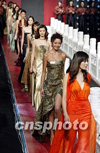 中國國際時裝周2004春夏系列發布會二十一日在北京開幕,中外模特在T臺上打造為期一周的時尚盛宴。中新社記者:毛建軍