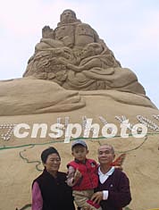 由中國、俄羅斯、日本、美國等七個國家的十余名沙雕藝術家創作的風格各異的沙雕作品近日在海口西海岸正式展出。其中航天英雄楊利偉的沙雕形象吸引眾多市民紛紛合影。中新社記者:王辛莉