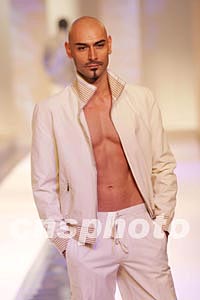 十一月二十四日,2004春夏流行趨勢“愛登堡”休閑男裝發布會在北京中國大飯店舉行,主題為“行走于都市”的男裝也走性感路線,另人耳目一新。中新社記者:盛佳鵬