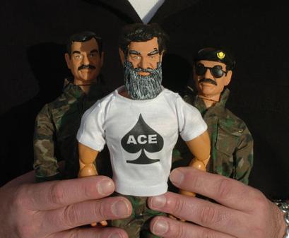 12月14日,伊拉克前總統薩達姆被美軍抓獲的消息轟動了世界,美國的玩具商反應神速,24小時后,在美國的一些電子商務網上就有“被捕的薩達姆”玩具出售。(AP Photo Douglas Healey)