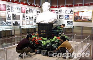 2003年12月26日是毛澤東誕辰110周年,位于北京天安門廣場上的毛主席紀(jì)念堂將舉辦多項(xiàng)活動隆重紀(jì)念,紀(jì)念堂中的“毛澤東展室”經(jīng)過精心布置準(zhǔn)備接待參觀者。中新社記者:任晨鳴