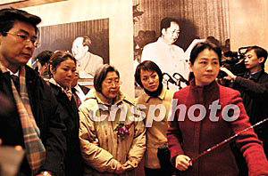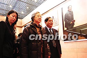 十二月十九日,毛澤東的女兒李敏(中)與其子孔繼寧(左一)、女孔東梅(前左三)在北京國家博物館出席“毛澤東檔案展”開幕式,并觀看毛澤東歷史圖片及百余件毛澤東書信手跡等珍貴陳列品。中新社記者:鄒憲