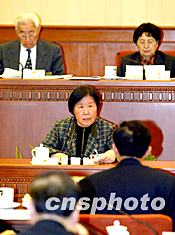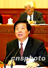 中共中央政治局委員王兆國,二十二日在十屆全國人大常委會第六次會議上作中共中央關于修改憲法部分內容建議的說明。中新社記者:滿會喬