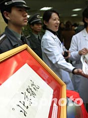 十二月二十六日是毛主席誕辰一百一十周年紀念日。毛主席一九五零年二月為北京醫院題寫院名的原件在北京醫院公開展出。作者:史利