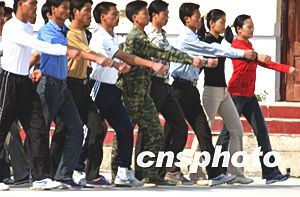 靠近中國的越南一家賓館員工,二十七日接受軍事化訓練以提高行業規范化服務,為新年旅游高峰做準備。中新社記者:宋吉河