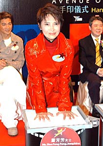 芳艷芬為香港《星光大道》打手印。息影女星芳艷芬1月5日在香港出席《星光大道》打手印儀式,芳艷芬才藝超卓,為五十年代粵劇花旦王,從影十年,演出電影一百五十多部電影。作者:鄧慶樂