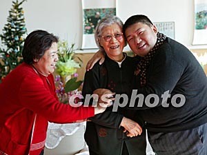 毛澤東主席的兒媳婦邵華(左),孫子毛新宇(右)春節期間到張愛萍將軍家拜年,與張將軍的夫人李又蘭在一起辭舊迎新。中新社記者:王瑤