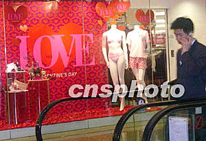 2月2日,香港一百貨公司櫥窗里寫上“LOVE”,并以性感內(nèi)衣作招徠,象征濃情密意。雖然離2月14日的情人節(jié)還有些日子,但是商家的宣傳攻勢(shì)已經(jīng)讓人感受到愛(ài)意撲面而來(lái)。作者:譚達(dá)明