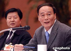 北京市代市長王岐山二月十六日下午參加北京市人大分組會議,就百姓拆遷工程等問題與代表展開討論。中新社記者:張宇
