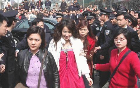 到13時,現場的保安和臨時通知增援的警察增加到了300多名。盡管這樣,好幾名保安在接受記者采訪時仍憂慮地表示,現場的歌迷和好事者已經數度想沖進保安防線,“如果蕭亞軒出現,不知道現場會怎樣!”而就在13時許的時候,歌迷就開始接近瘋狂狀態。在保安線外的歌迷們手拿蕭亞軒的巨幅海報、照片和CD亂舞,有的歌迷根本不認識在場內的記者,仍然執意要把照相機交給記者,請記者為他們近距離拍偶像的照片。在活動區域右側的一群歌迷一直整齊劃一地高喊“Elva(蕭亞軒英文名)”達半小時以上。原本這個區域的保安只有一層,但由于這群歌迷不停地尋找機會沖進場內,現場指揮不得不增加一排保安和一排警察組成三重人墻才控制住場面。