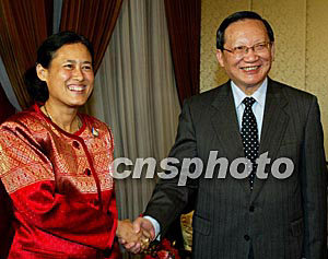 中國國務委員唐家璇,二月二十五日在北京會見泰王國瑪哈扎克里·詩琳通公主。中新社記者:鄭萍萍
