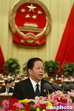 三月十日,中國最高人民法院院長肖揚在北京人民大會堂舉行的十屆全國人大二次會議第四次全體大會上作“高法”報告。中新社記者:毛建軍