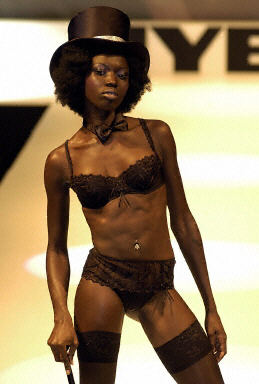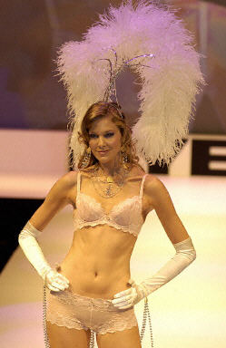 3月17日,在巴黎的ready-to-wear流行時尚展覽會上,模特展示了Myer lingerie的新款內衣。