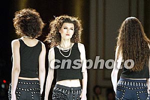 2004/2005秋冬流行趨勢主導品牌“威鵬”牛仔裝發布會三月三十日在北京國際時裝周亮相,模特展示面料講究、款式新穎的系列牛仔裝。毛建軍 攝