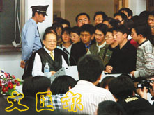 對于浙大學子來說,這位80歲的人文學院院長的個人魅力仍不容小覷,整個報告會場被圍的水泄不通。他以一位“過來人”的口吻,語重心長地說:“我是一個報人,將一生40年的時間放在了報紙上,因為在報紙上花的時間多了,寫小說、做學問的時間就少了。各位還年輕,除了玩樂,應該把更多的時間放在做學問上。”