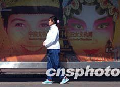 四月春光明媚的北京街頭,法國美女與中國京劇藝員的大幅招貼畫隨處可見。今年是中法文化交流年,兩國在科教文化及國際政治等領域內進行了廣泛的合作。中新社記者:賈國榮