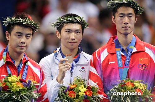 王皓不敵韓國選手柳承敏 痛失奧運乒乓男單金牌