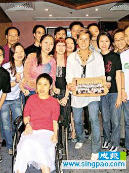 而席上有一名跟隨阿倫多年的女歌迷,由于她患了先天性痙攣,一班歌迷會成員平日都自發(fā)性照顧她,最近更與阿倫發(fā)起捐錢買一部電動輪椅給她,但這位歌迷堅持自己也要出一份錢,此事令阿倫很感動。阿倫表示,這位歌迷的事件,正好告訴大家,凡事都有希望,只要抱樂觀心情,問題自會解決。