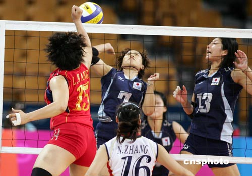 當(dāng)?shù)貢r(shí)間八月二十四日,中國(guó)女排在雅典奧運(yùn)會(huì)上以三比零戰(zhàn)勝日本隊(duì)。中新社記者:毛建軍