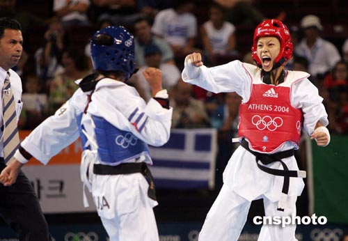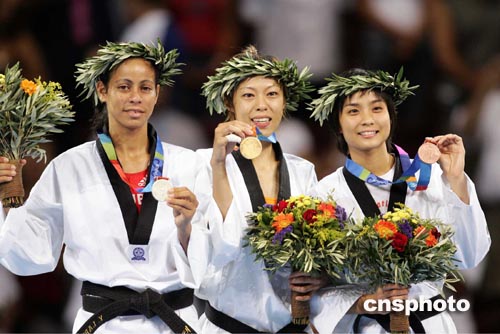 中新社雅典八月二十六日電 二十六歲的中國臺北選手陳詩欣今天在奧運會女子跆拳道四十九公斤級決賽中力克古巴名將萊布拉達,為中國臺北奪得奧運會歷史上的首枚金牌。