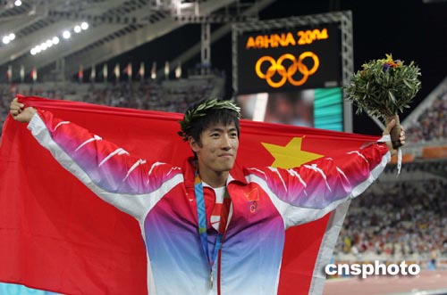 中新社雅典八月二十七日電(記者 沈晨 宋方燦)上海小將劉翔今晚在奧運會男子一百一十米欄決賽中以十二秒九一勇奪冠軍,平了該項目的世界紀錄并創造新的奧運會紀錄,成為首位在奧運會田徑短距離競技項目中奪冠的中國運動員。