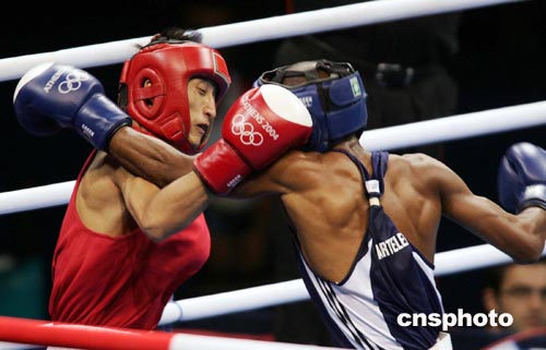 當(dāng)?shù)貢r間8月27日,中國選手鄒市明(左)在奧運會拳擊男子48公斤級半決賽中,負于古巴強手揚·巴特雷米,無緣決賽。由于奧運會拳擊比賽不再進行三四名的爭奪,因此鄒市明已經(jīng)獲得銅牌。這是中國拳手在奧運會上歷史性的突破,中國拳手此前在奧運會上從未進入過前4名。中新社記者:毛建軍