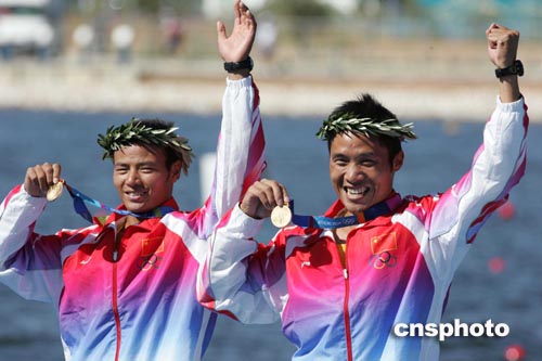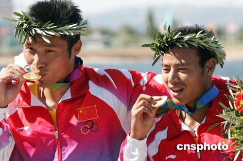 中新社雅典八月二十八日電(記者沈晨)孟關(guān)良/楊文軍組合今日上午在奧運會男子雙人劃艇五百米決賽中以一分四十秒二七八摘得金牌,實現(xiàn)中國水上項目歷史性突破。