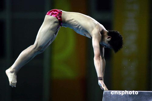 第一個動作,四人之間就展開了激烈的爭奪。但技高一籌的田亮將難度系數為三點四的動作發揮得淋漓盡致,獲得九十五點八八的高分,他也因此占據了榜首的位置,領先排名第二的德斯帕蒂九點零六分,胡佳、赫爾姆分列第三和第四。