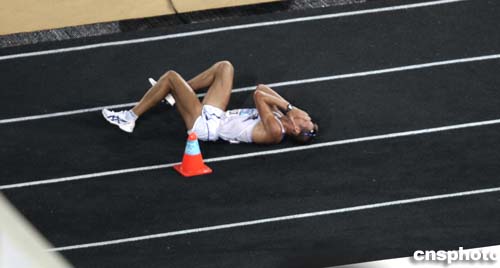 圖為在當地時間29日進行的男子馬拉松比賽中,獲得冠軍的意大利選手巴爾蒂尼。