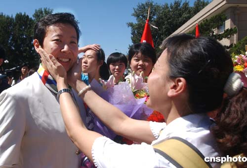 中國最后一批奧運健兒凱旋 李長春等到機場歡迎