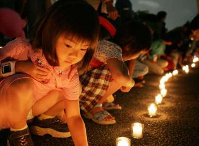 日本小朋友舉行燭光悼念。