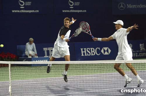九月十九日,在北京網球中心中央球場進行的男子雙打決賽是在兩對美國選手中展開,最終基米爾斯托博和奧利維戰勝波格莫洛夫和丹特奪取冠軍。中新社記者:盛佳鵬
