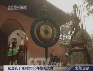 今天是孔子誕辰兩千五百五十五周年,也是中華民族傳統(tǒng)的團(tuán)圓節(jié)日中秋節(jié)。在這個(gè)喜慶的日子里,曲阜市民迎來了首次官方祭祀孔子的慶典。上午九點(diǎn)整,在莊嚴(yán)肅穆中,官方祭祀隊(duì)伍經(jīng)圣時(shí)門、弘道門、大中門、同文門、奎文閣、十三碑亭、大成門、杏壇登上大成殿前的祭祀平臺(tái),公祭先師孔子。