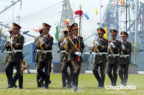 圖為駐軍軍樂隊在球場表演《好日子》。