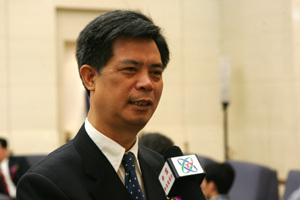 中國新聞社總編輯郭招金接受中央電視臺采訪