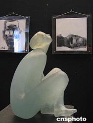 十月一日至十日,在巴黎最高的畫廊——距地面一百多米的拉迪芳斯新凱旋門畫廊舉辦了一個匯粹了中法兩國藝術家并集繪畫、雕塑、攝影于一體的大型展覽。來自浙江畫院的十八位畫家的八十余幅中國畫、來自浙江嘉興的二十五位攝影家拍攝的近百幅照片,同法國雕塑家的雕塑作品一道展出,東西方文化間的交流與對比表現得淋漓盡致。圖為中國畫家寫意中國畫前的法國雕塑家的人體雕塑作品,兩者風格迥異,卻顧盼成趣。作者:鐘誠