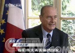 在希拉克總統啟程前,中央電視臺派出專訪組前往法國對他進行了專訪,當地時間9月28日上午,在法國總統府愛麗舍宮,希拉克總統接受了中央電視臺的專訪。