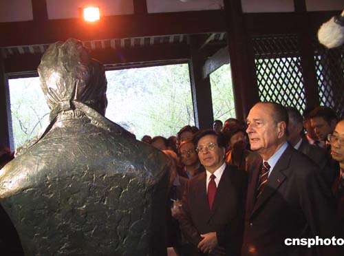 今年七十二歲的希拉克總統在此次訪華行前,自稱肩負著“悠長的文化情緣”。他說:“一提四川,人們會想到中國文學的鼎盛時期。四川可能是李白的出生地,杜甫也曾在成都居住。杜甫草堂,這地名真是令人激動。”