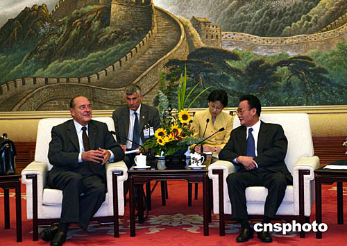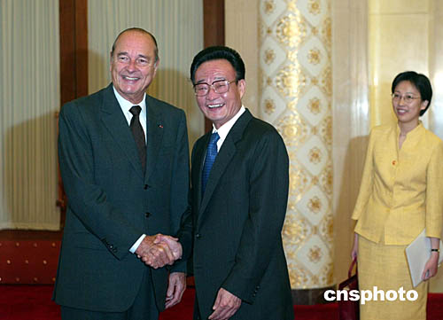 中國全國人大常委會委員長吳邦國十月十日在北京會見法國總統希拉克。中新社記者:滿會喬